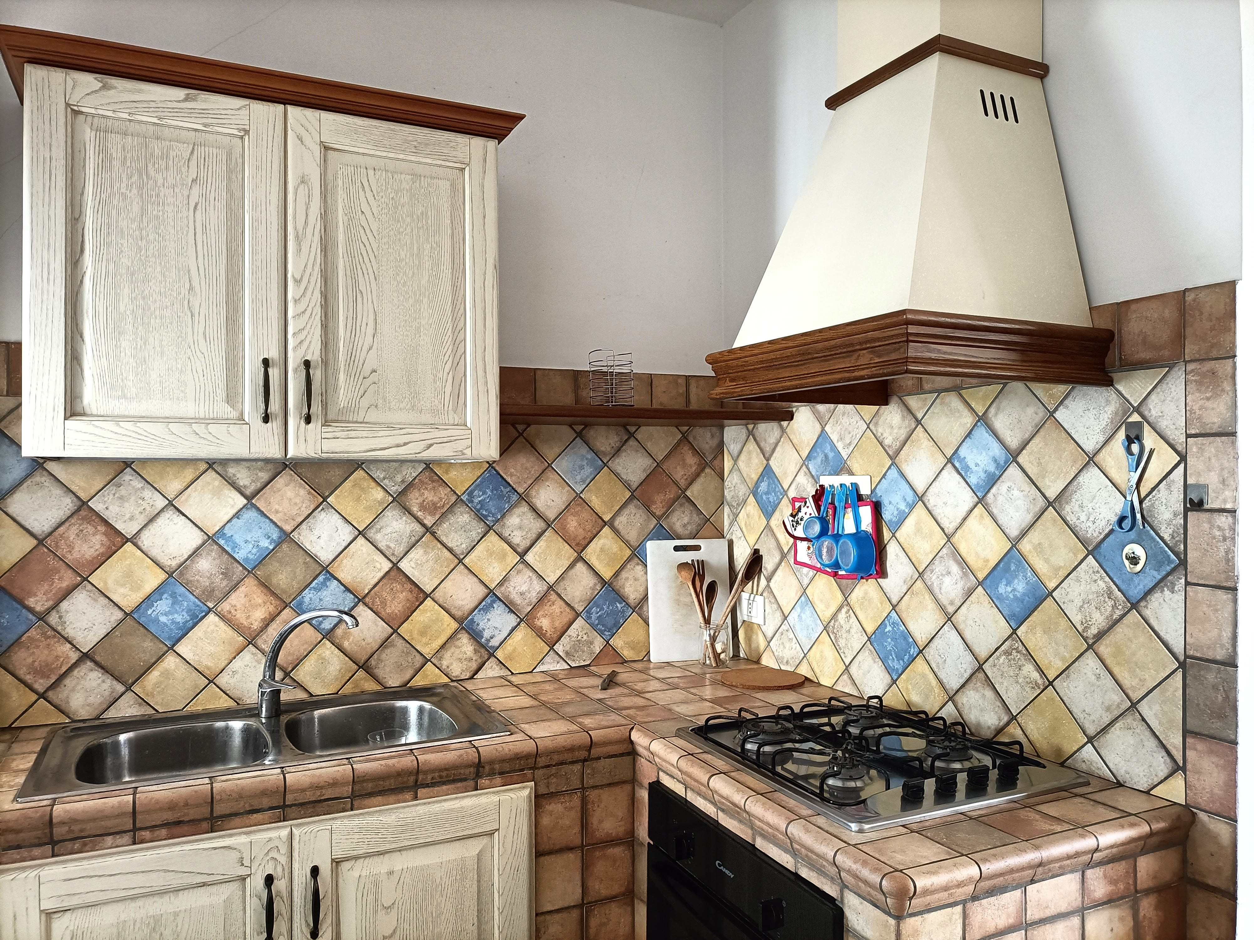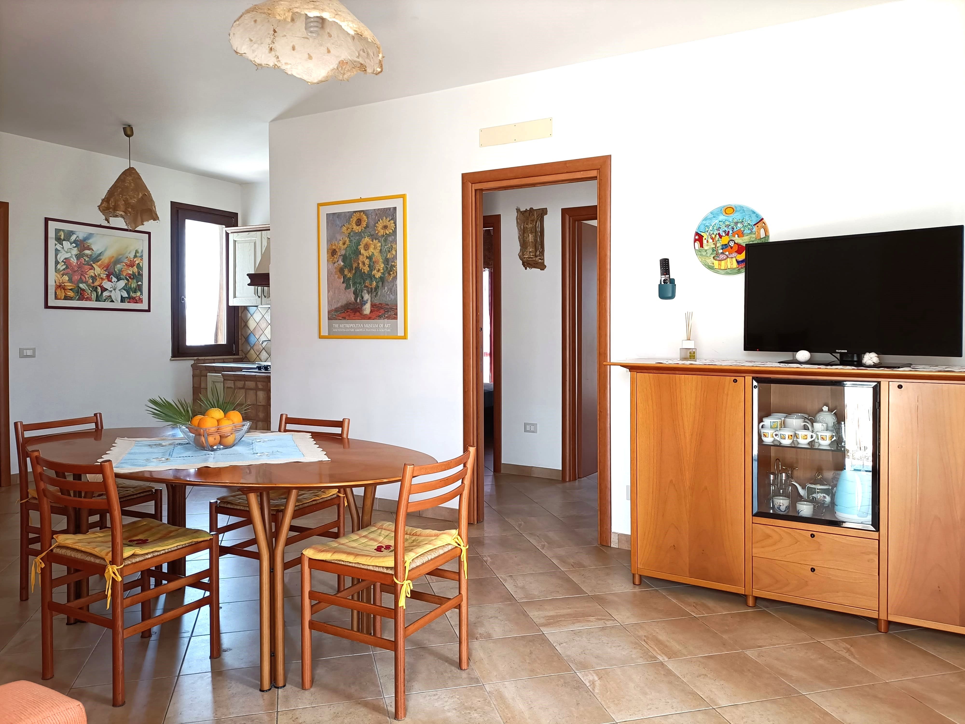 Appartamento di 3 locali di 60 mq al primo piano. Arredamento funzionale e confortevole: soggiorno/sala da pranzo con 1 divano letto e TV (schermo piatto). Uscita sulla veranda. 2 camere matrimoniali, ciascuna con climatizzazione e riscaldamento di aria calda. Uscita sulla terrazza. Angolo cottura ( 4 fuochi, forno, tostapane, bollitore elettrico, frigo con congelatore) Doccia/bidet/wc.Caldaia a gas. Riscaldamento con termosifoni in tutti i locali. Terrazza di 12 mq, lato camere da letto, e un'altra di 15 mq, in parte coperta, lato soggiorno/sala da pranzo. Mobili da terrazza. Vista sul paese. A disposizione: lavatrice, ferro da stiro, seggiolone, lettino per bimbi fino a 2 anni, asciugacapelli. Internet /wifi, gratuito). Pass parcheggio (1 auto)
