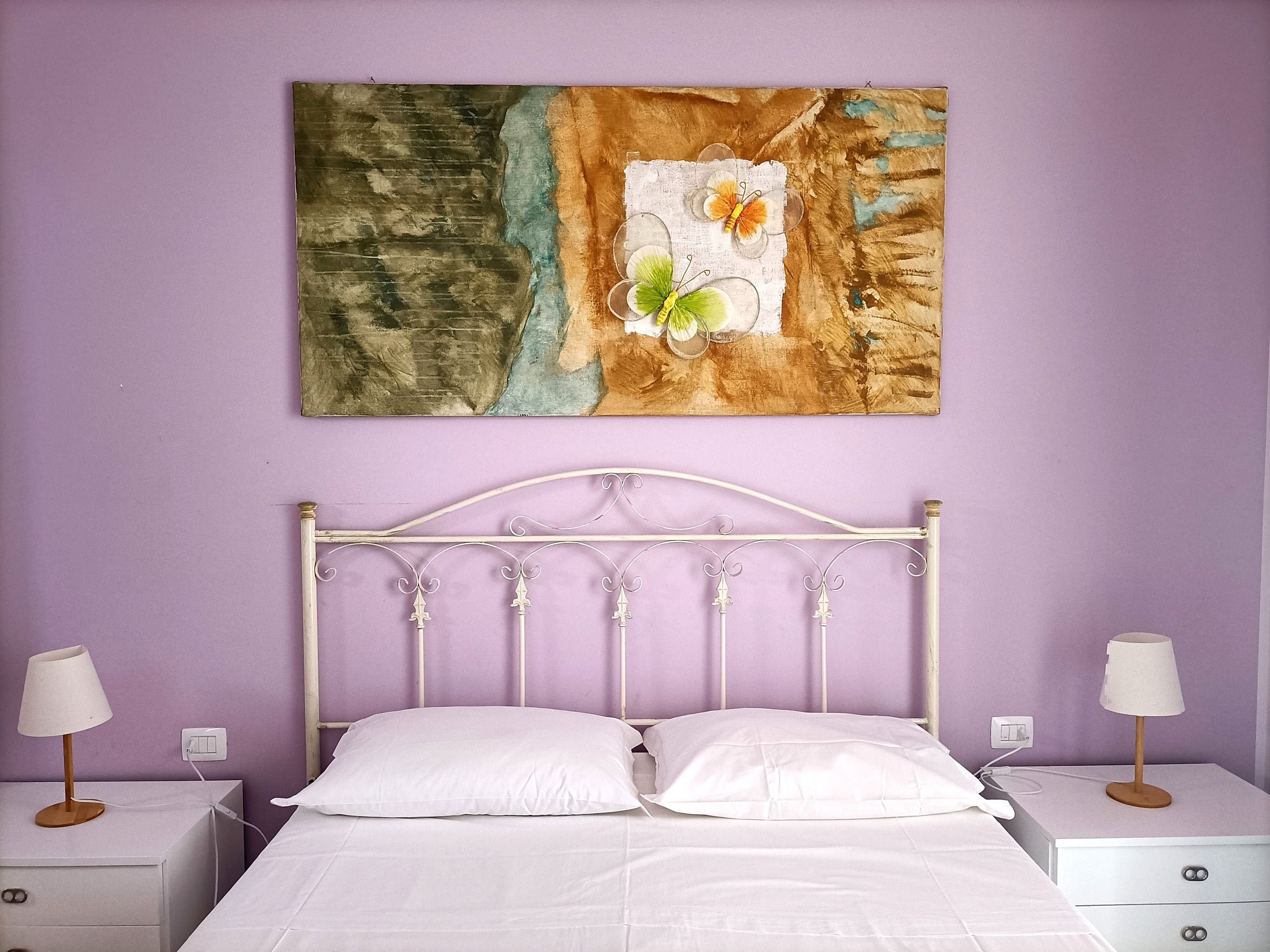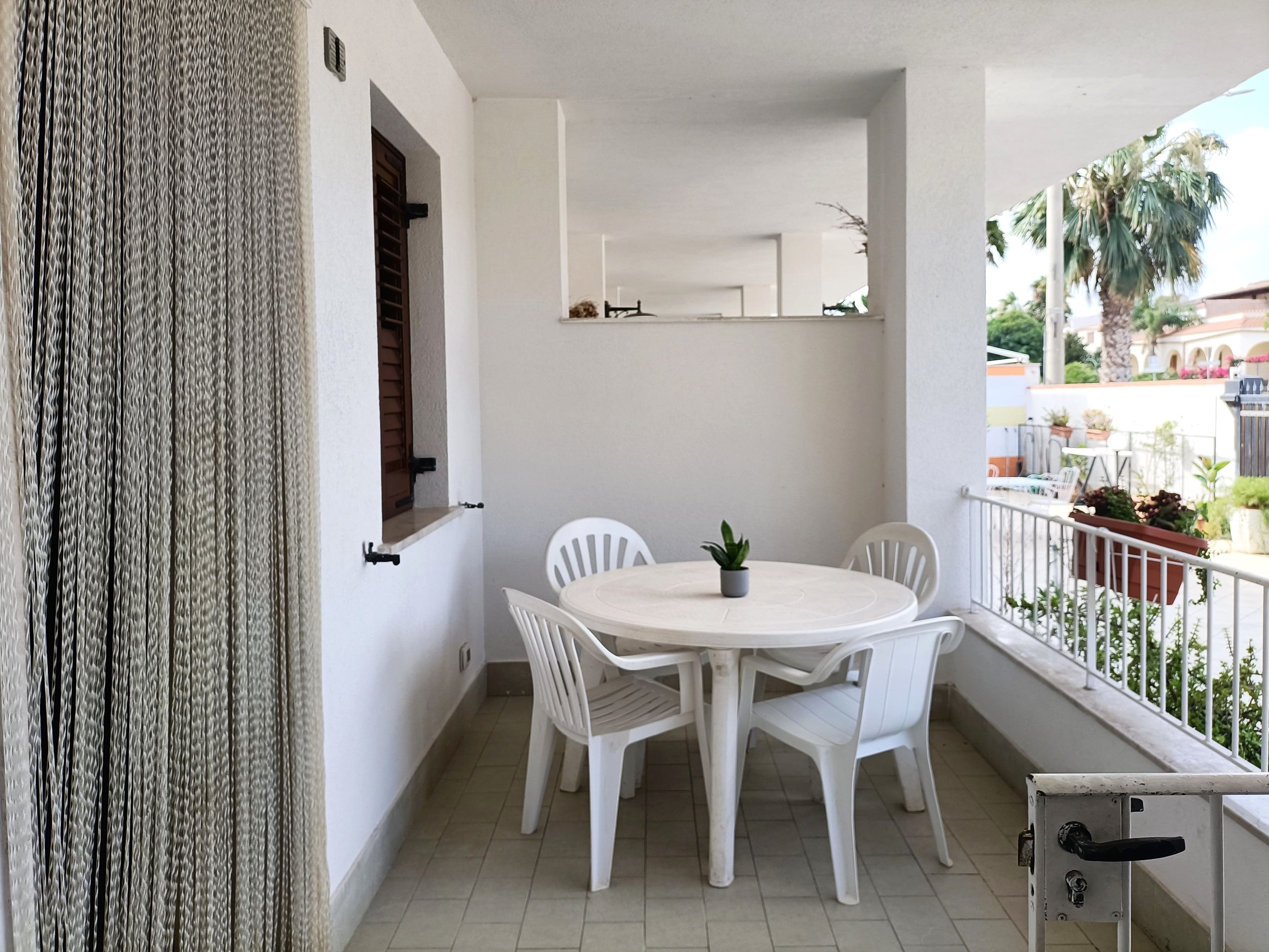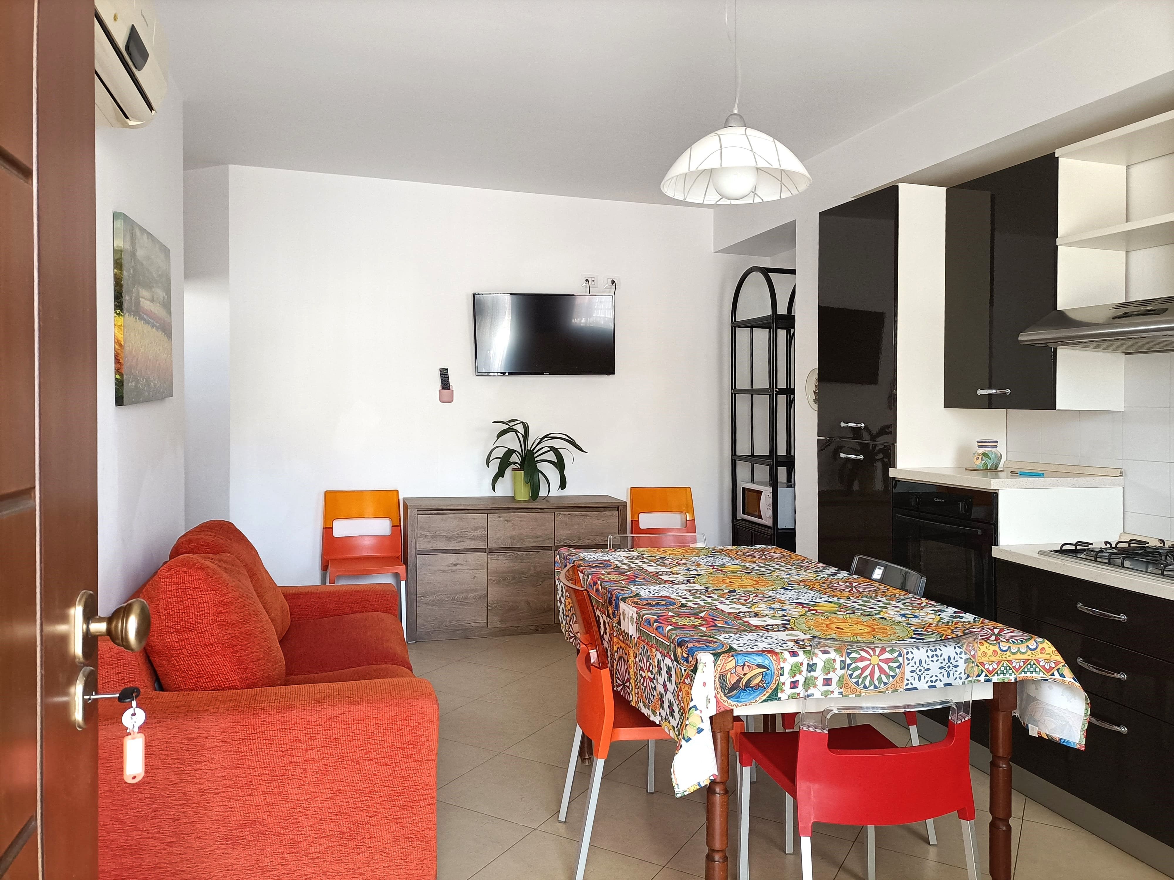 Appartamento trilocale al piano terra composto da soggiorno pranzo con angolo cottura e divano, bagno con doccia, una camera doppia o matrimoniale, una camera matrimoniale, climatizzatore, tv, asciugacapelli, terrazzino autonomo, lavabiancheria con ampio terrazzo solarium in comune al secondo piano, wi-fi gratuito