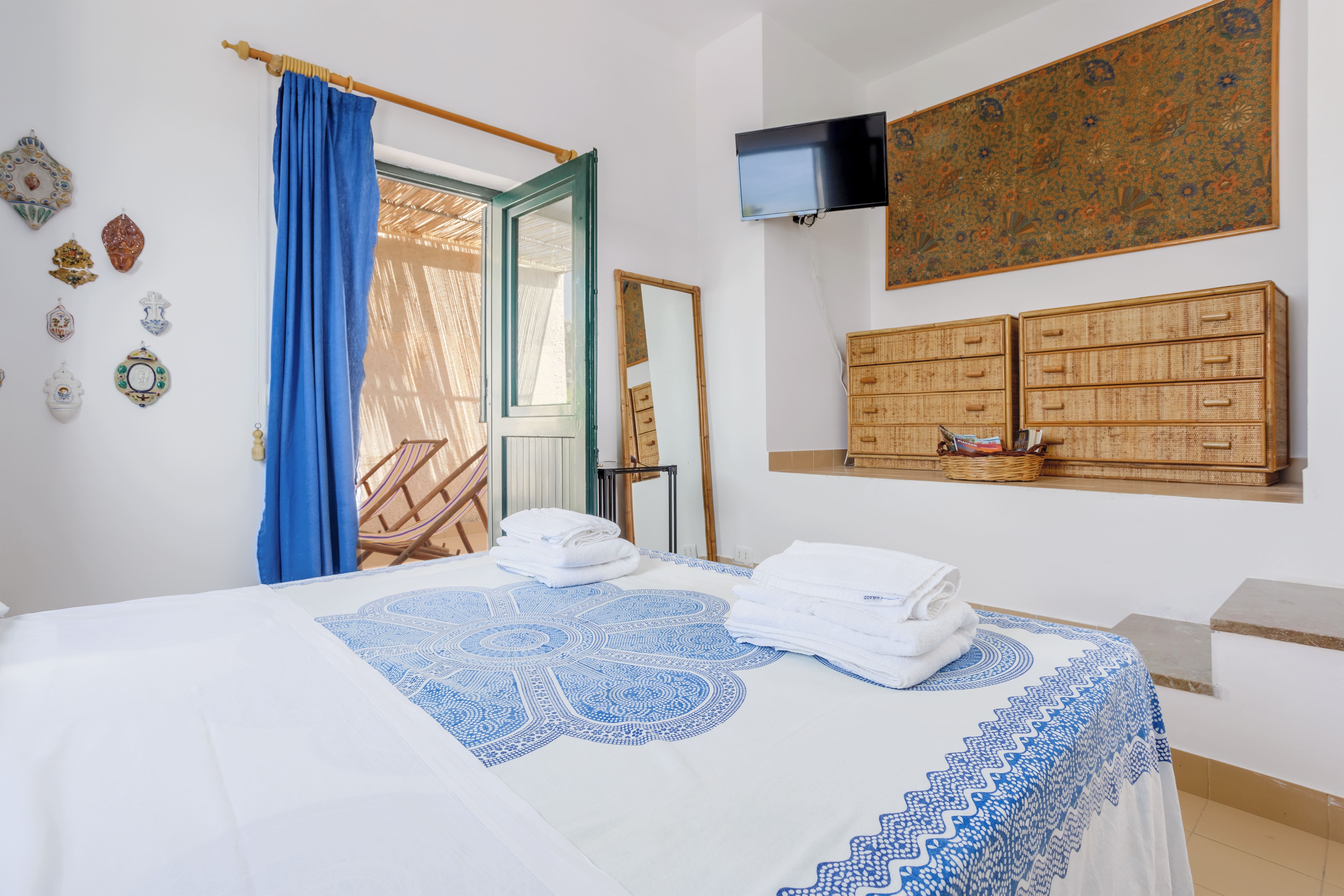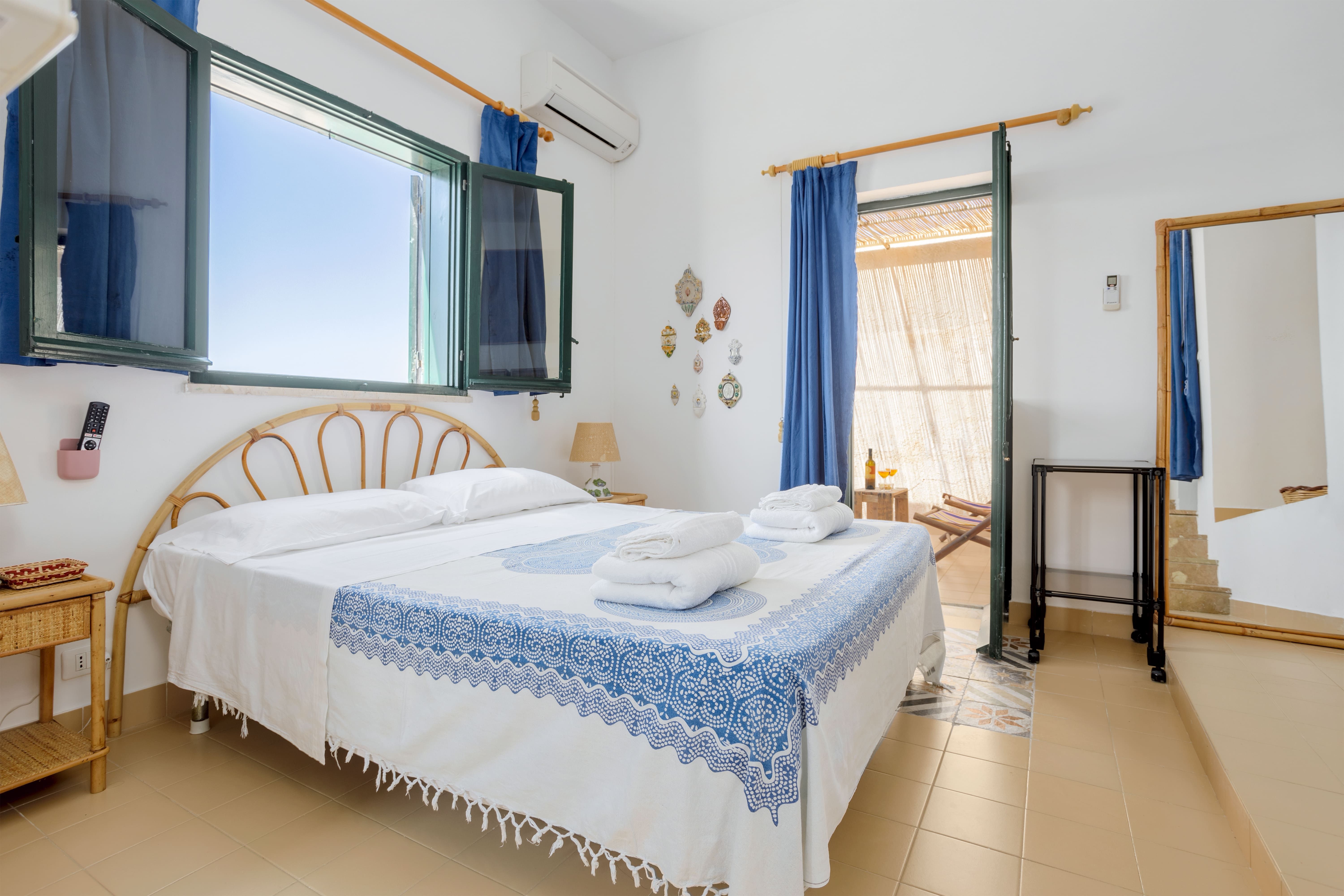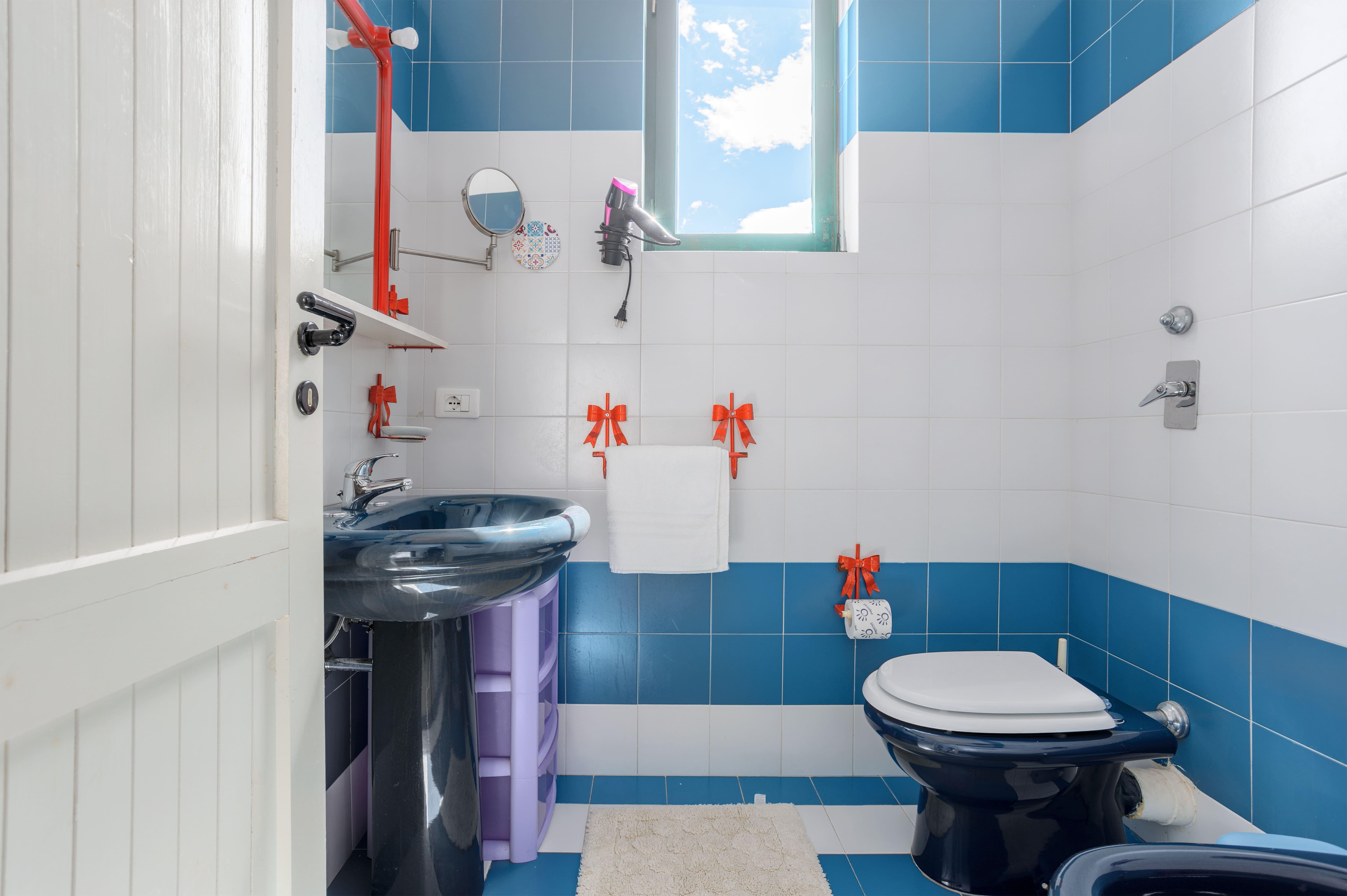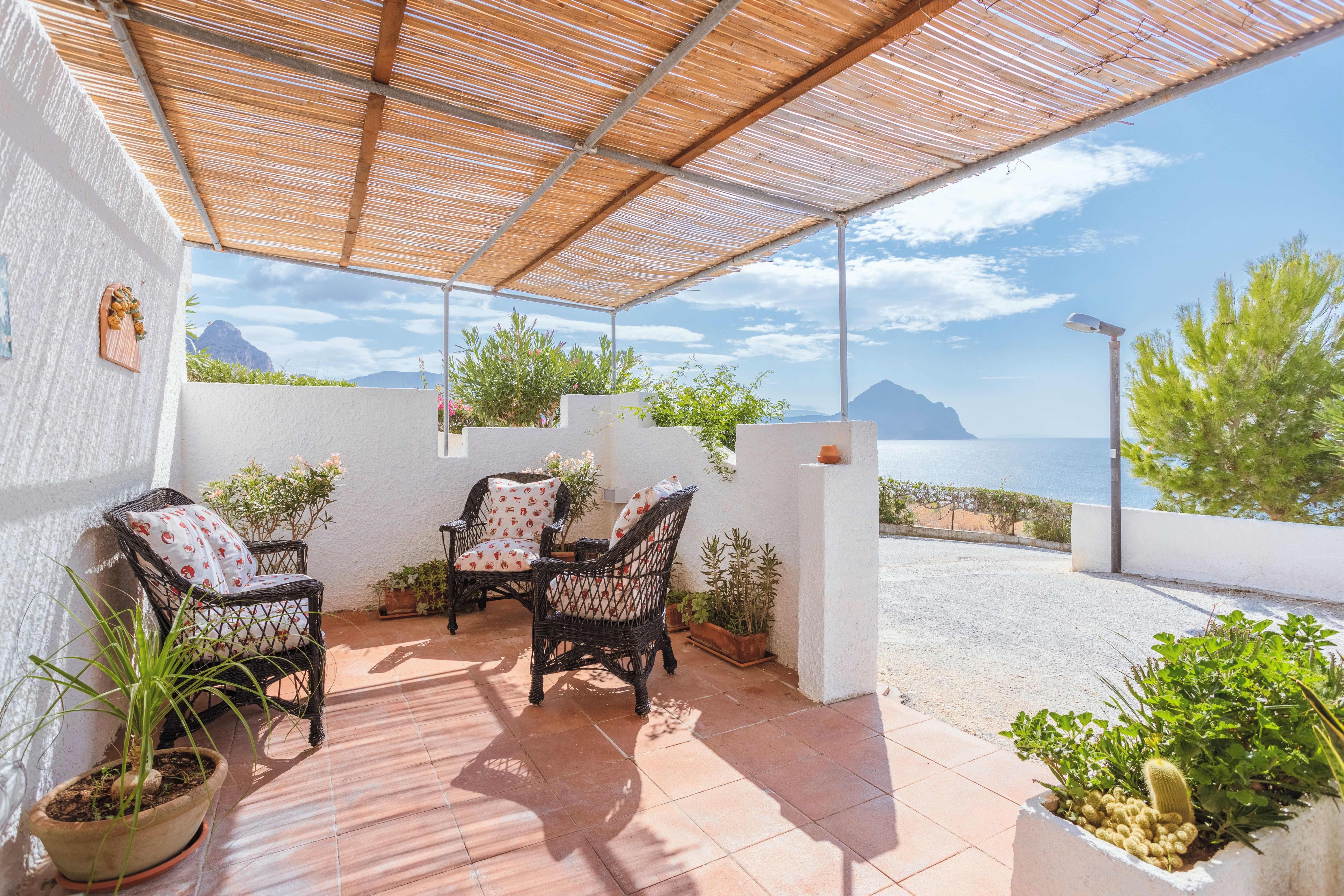 Villetta semi indipendente di 4 locali di 85 mq su 2 piani. Arredamento funzionale e confortevole: entrata da una terrazza vista mare con pergolato di 24 mq con divanetto, poltrone, sedie e tavolino. Ingresso con angolo cottura 4 fuochi. Bagno completo con doccia/bidet/wc. Soggiorno/sala pranzo con divano e TV (schermo piatto 40”). Climatizzazione e riscaldamento di aria calda. 1 cameretta con due posti letto. 1 camera matrimoniale. Uscita su un ulteriore terrazzo di 24 mq attrezzato con tavolo e sedie. Piano superiore: scala interna in muratura. 1 camera matrimoniale con finestra vista mare con climatizzazione e riscaldamento di aria calda. Uscita su 2 terrazze, di cui una di 12 mq coperta con pergolato e attrezzata con sedie a sdraio, l'altra di 14 mq scoperta, entrambe con vista mare. Bagno con lavabo/bidet/wc. Boiler elettrico. A disposizione: forno a microonde, tostapane, frullatore, bollitore elettrico, caffettiera, ferro da stiro, seggiolone, lettino per bimbi fino a 2 anni, asciugacapelli, lavatrice, frigo con congelatore, barbecue. Internet (wifi, gratuito). Parcheggio riservato davanti la villetta (1 auto)