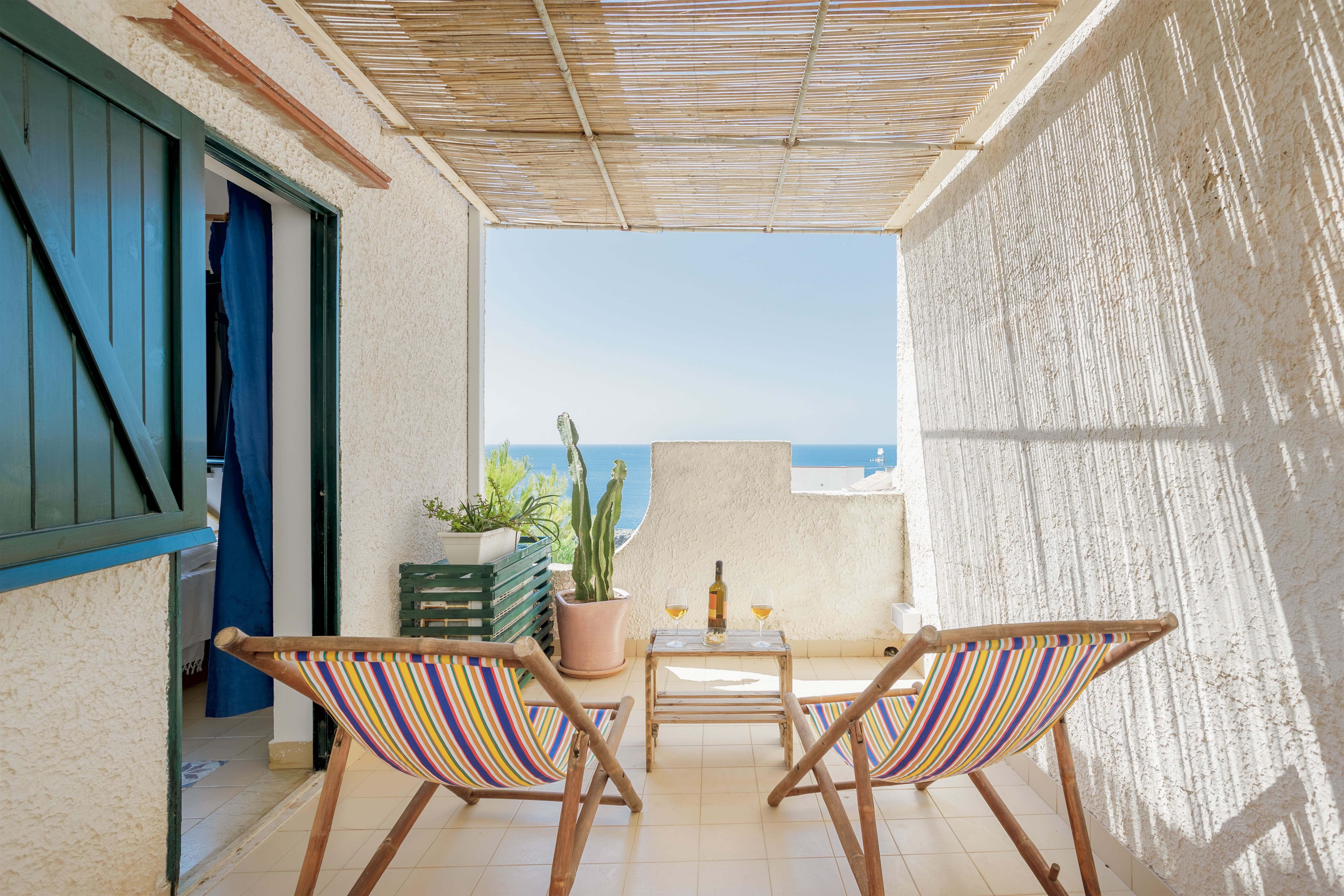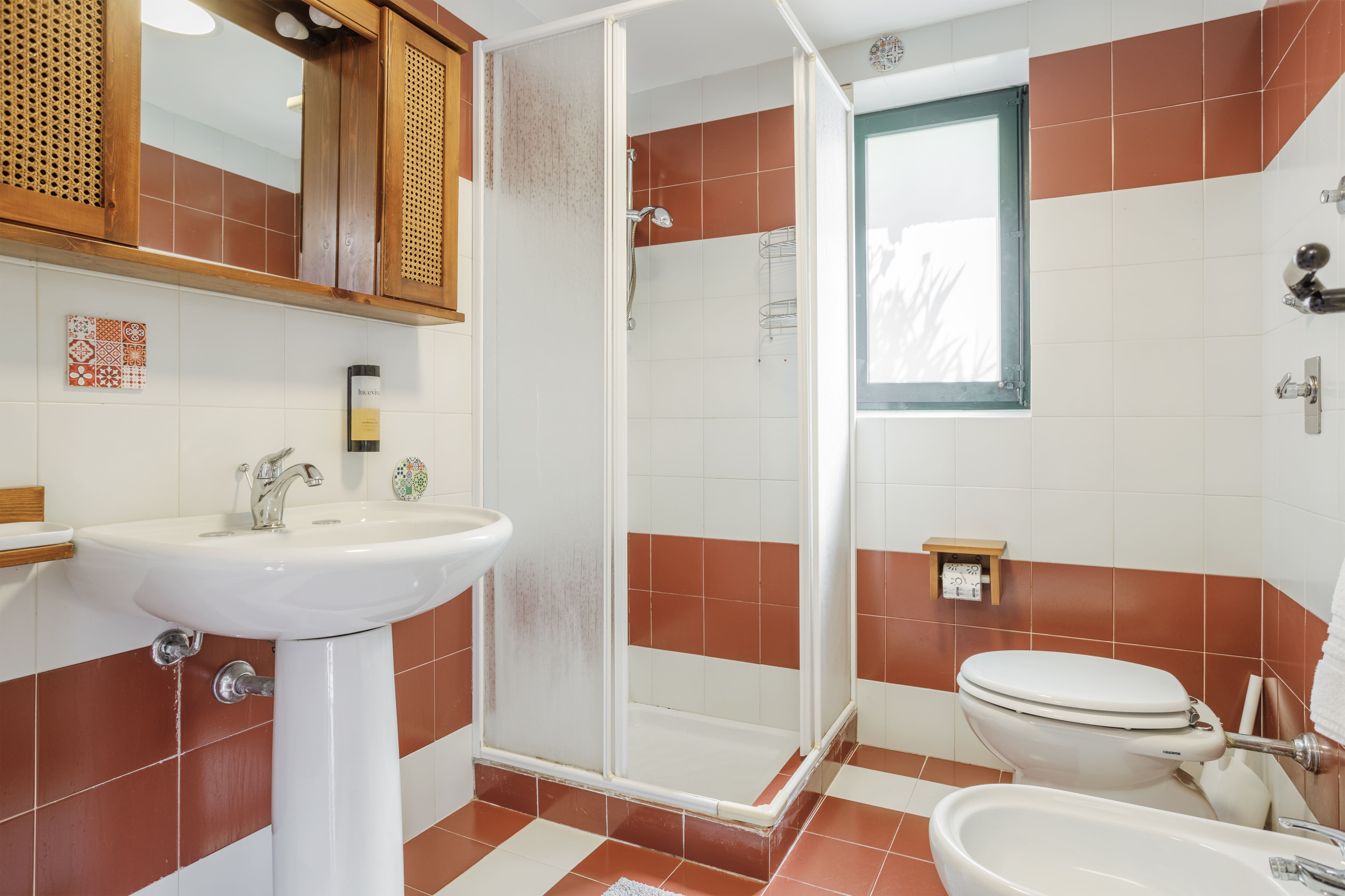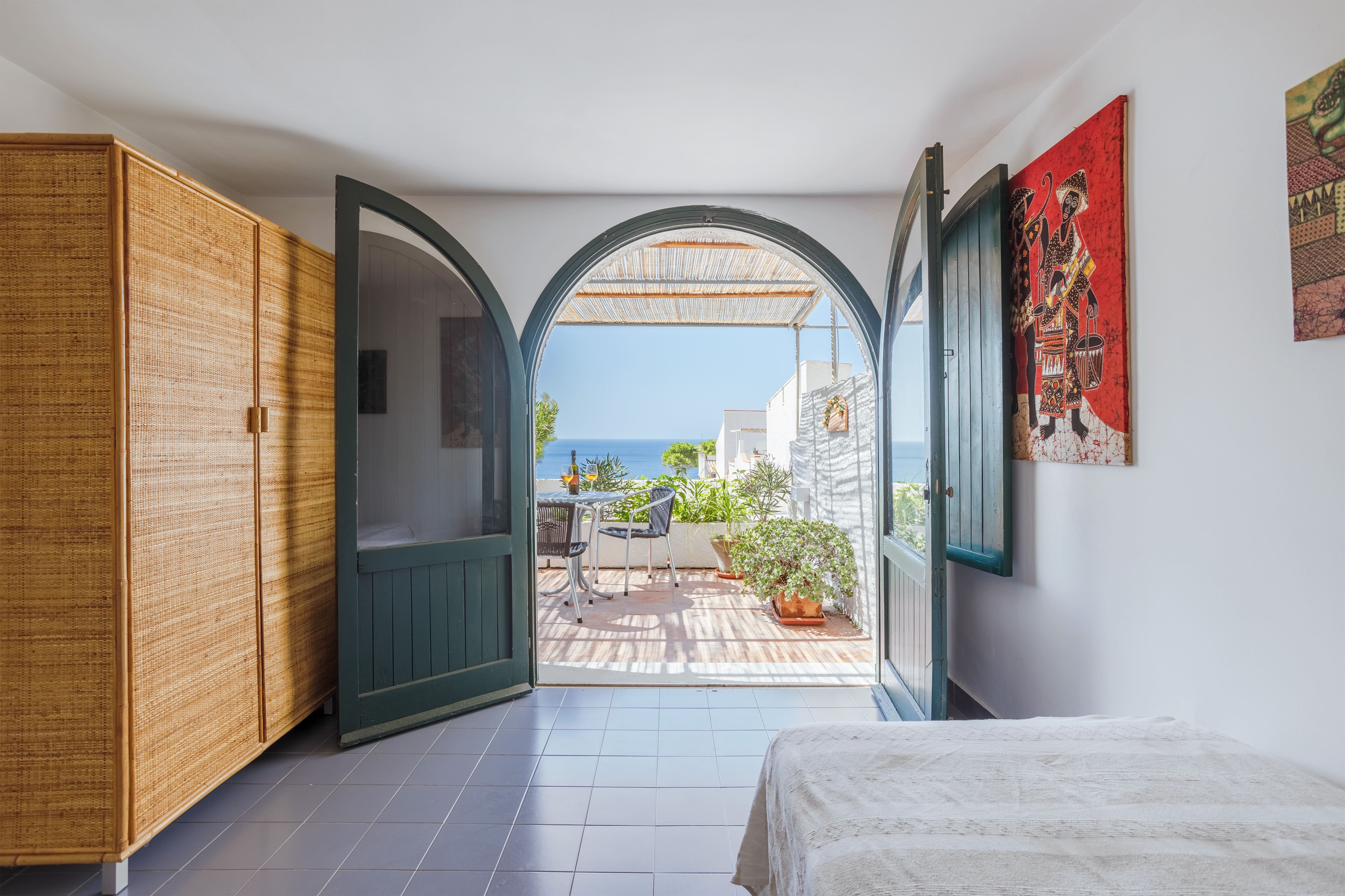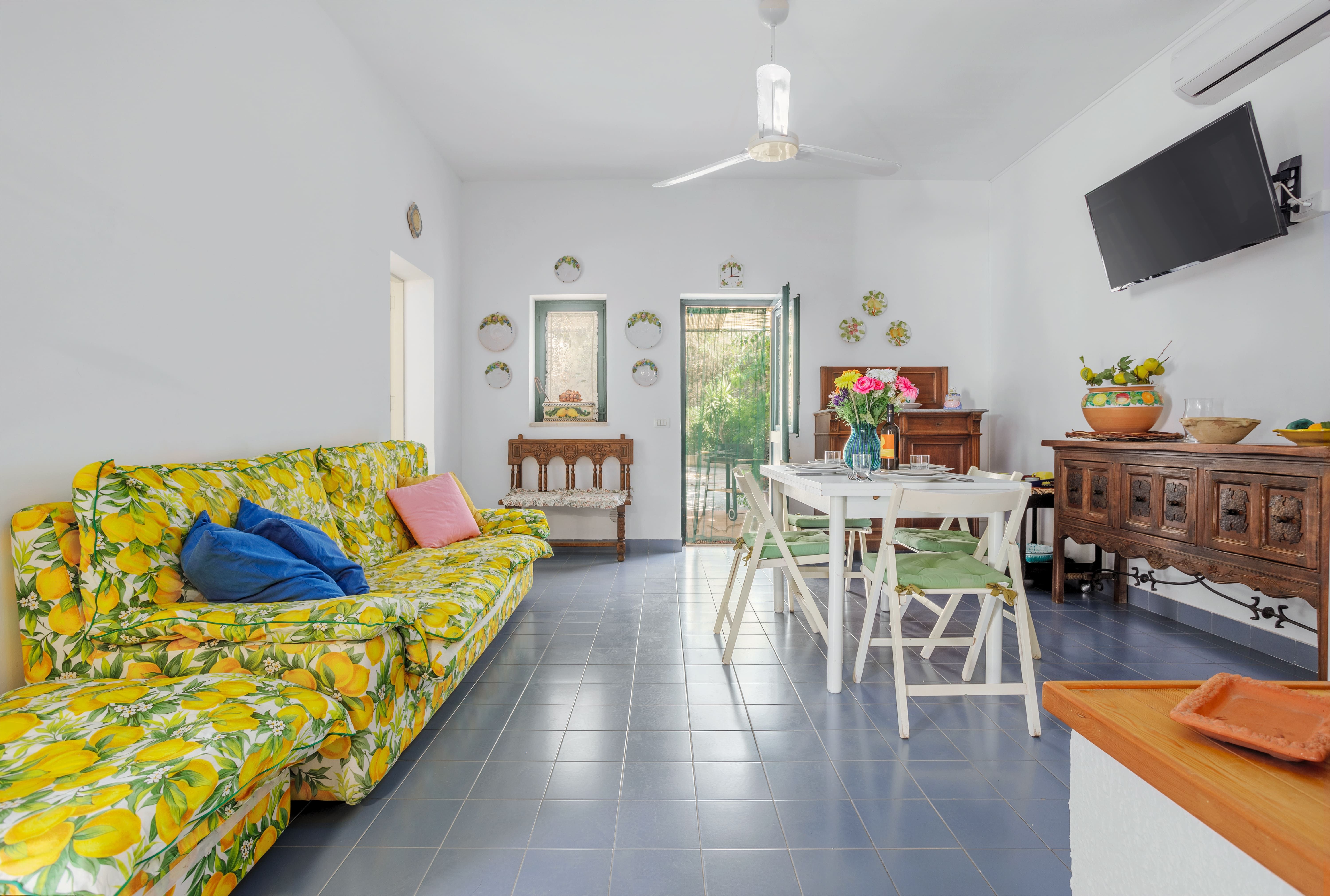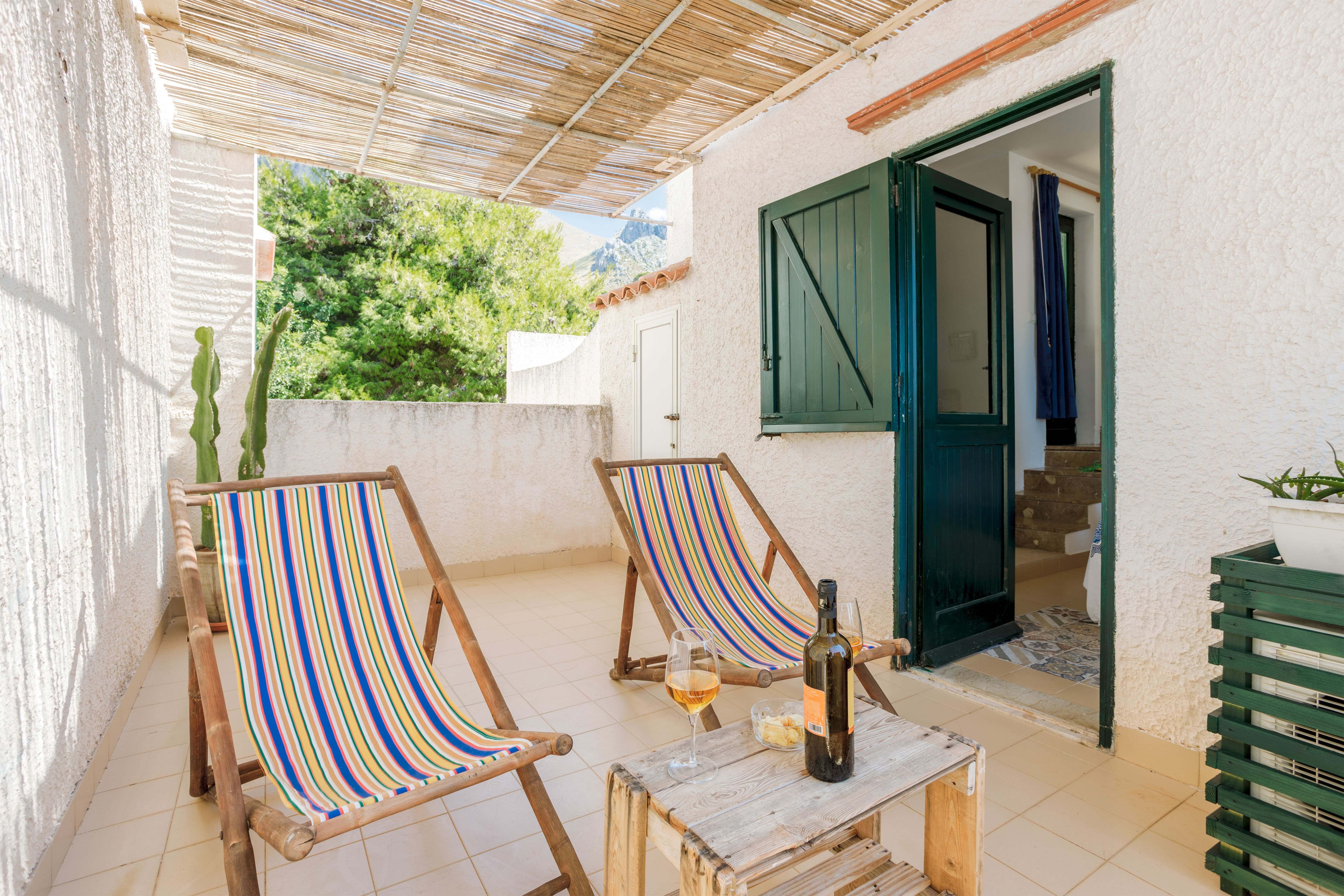 Villetta semi indipendente di 4 locali di 85 mq su 2 piani. Arredamento funzionale e confortevole: entrata da una terrazza vista mare con pergolato di 24 mq con divanetto, poltrone, sedie e tavolino. Ingresso con angolo cottura 4 fuochi. Bagno completo con doccia/bidet/wc. Soggiorno/sala pranzo con divano e TV (schermo piatto 40”). Climatizzazione e riscaldamento di aria calda. 1 cameretta con due posti letto. 1 camera matrimoniale. Uscita su un ulteriore terrazzo di 24 mq attrezzato con tavolo e sedie. Piano superiore: scala interna in muratura. 1 camera matrimoniale con finestra vista mare con climatizzazione e riscaldamento di aria calda. Uscita su 2 terrazze, di cui una di 12 mq coperta con pergolato e attrezzata con sedie a sdraio, l'altra di 14 mq scoperta, entrambe con vista mare. Bagno con lavabo/bidet/wc. Boiler elettrico. A disposizione: forno a microonde, tostapane, frullatore, bollitore elettrico, caffettiera, ferro da stiro, seggiolone, lettino per bimbi fino a 2 anni, asciugacapelli, lavatrice, frigo con congelatore, barbecue. Internet (wifi, gratuito). Parcheggio riservato davanti la villetta (1 auto)