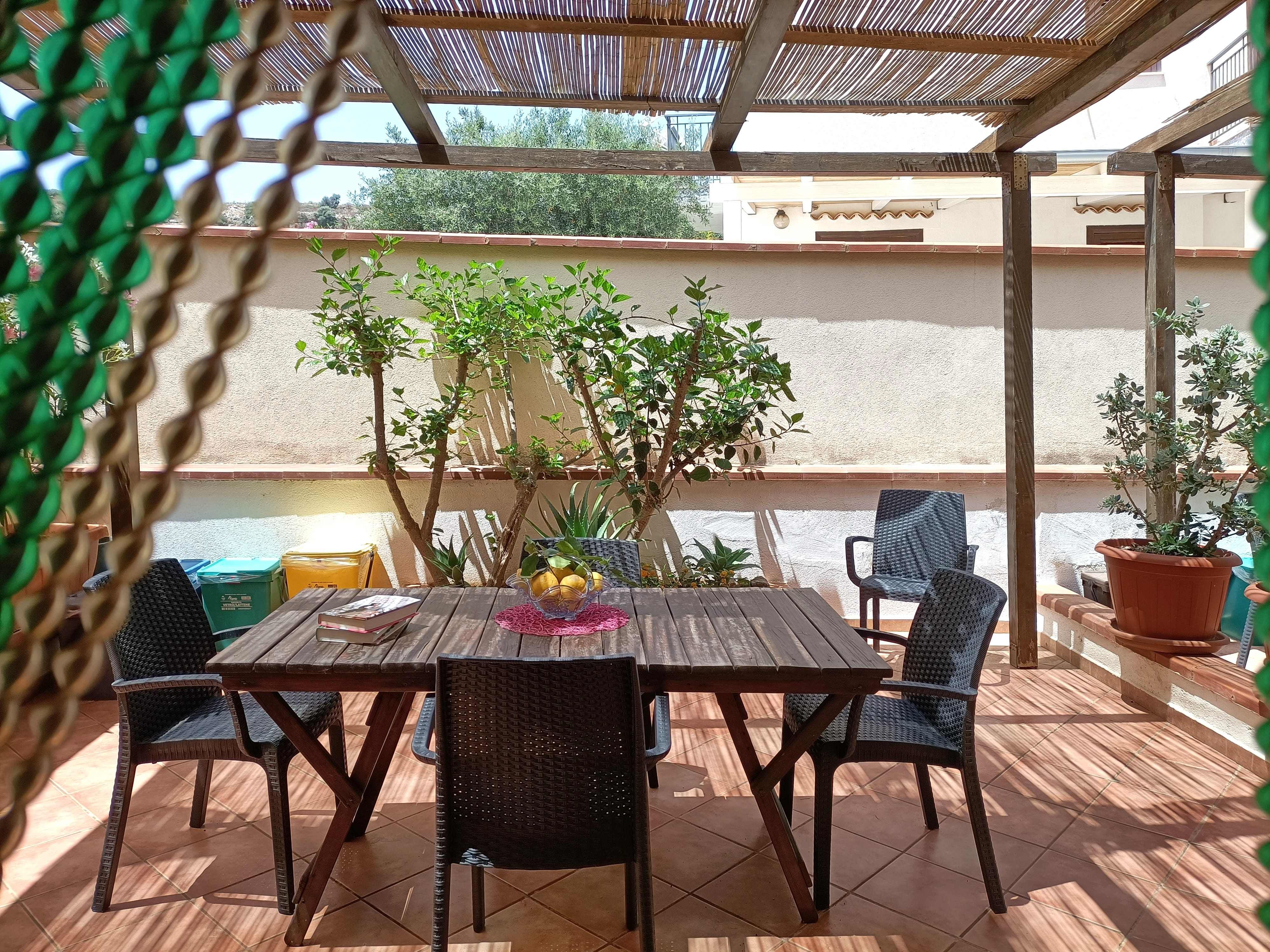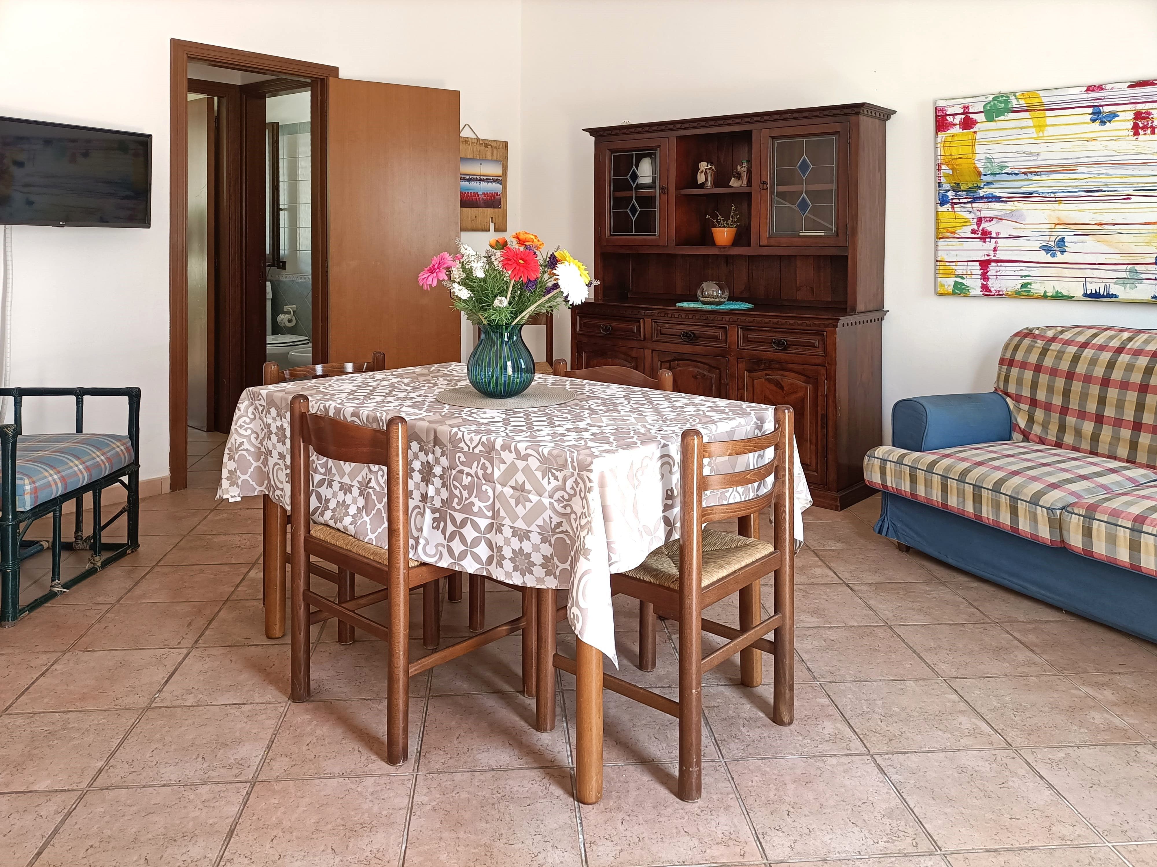 Villetta a schiera di 3 locali di 60 mq su due piani. Arredamento funzionale e confortevole: soggiorno/sala da pranzo con 1 divano letto (140 cm) e TV (schermo piatto). Piccola cucina (4 fuochi, tostapane, bollitore elettrico, forno a microonde, frigo con congelatore). Uscita sulla terrazza di 20 mq coperta con pergolato ombreggiato. Mobili da terrazza. Doccia/bidet/wc, sempre al piano terra. Boiler (50 litri). Scala interna in muratura. A primo piano: 1 camera matrimoniale con climatizzazione e riscaldamento di aria calda. Uscita su balcone di 3 mq. 1 camera con 2 letti con climatizzazione e riscaldamento di aria calda. Uscita su balcone di 3 mq. Vasca/bidet/wc. A disposizione: lavatrice, ferro da stiro, seggiolone, lettino per bimbi fino a 2 anni, ascigacapelli. Internet (wifi, gratuito). Pass parcheggio (1 auto) nelle vicinanze della villetta